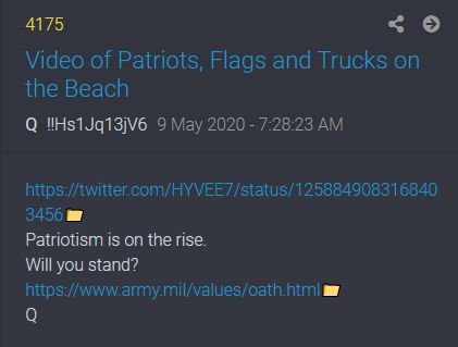 5: 5 - Fuerte y claro - También un Q Anon que indica que suceden cosas GRANDES (D5 = Avalancha / D5 = Movimiento de ajedrez).